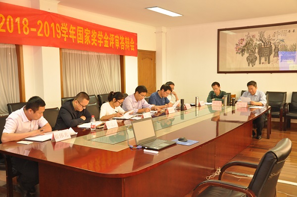学生处处长樊丽庆向校评审组汇报了2018-2019学年国家奖学金申报工作组织及初评情况,详细介绍了个人申报、各班初评、系部审核等环节,各系共推荐18名优秀学生作为候选人参加学校评审。