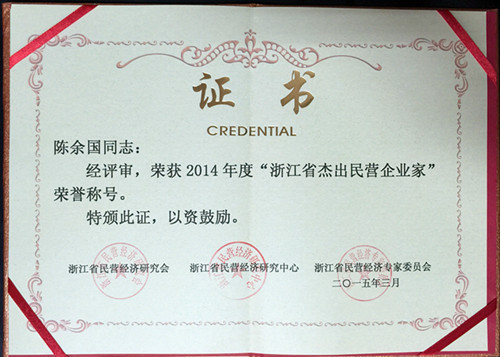 在2014年度浙江省优秀民营企业、浙江省杰出民营企业家颁奖典礼上,学院董事长、党委书记陈余国荣获2014年度“浙江省杰出民营企业家”荣誉称号。本次评选由浙江省民营经济研究会、浙江省民营经济研究中心和民营经济专家委员会联合举办。