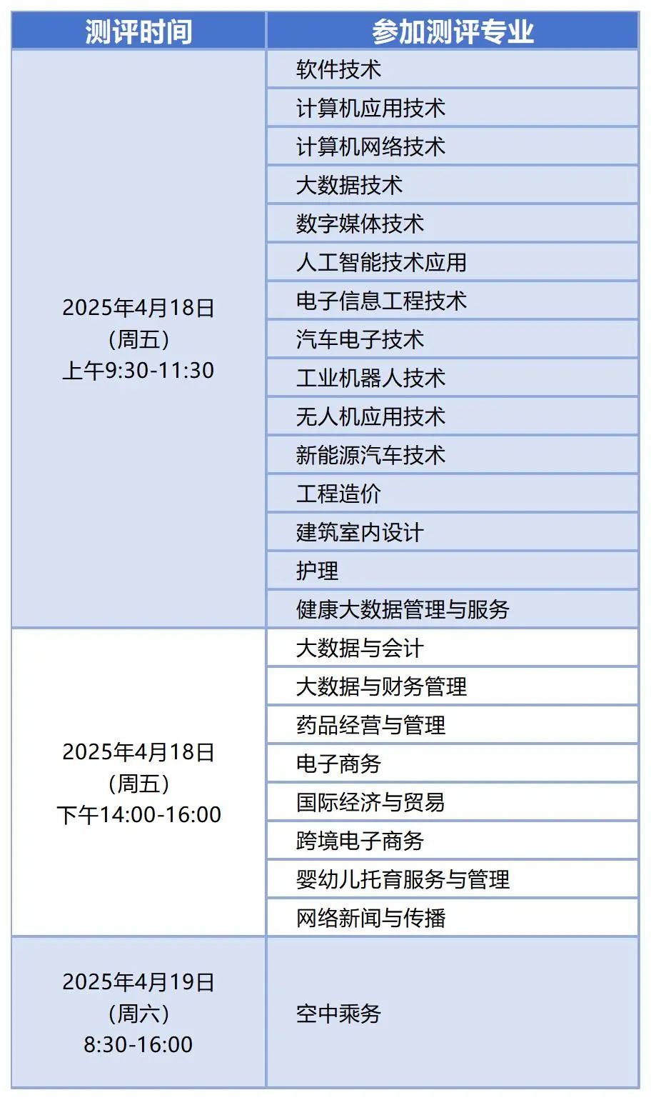 5.2025年4月18日~4月19日,学生参加综合素质测评。具体情况如下表: