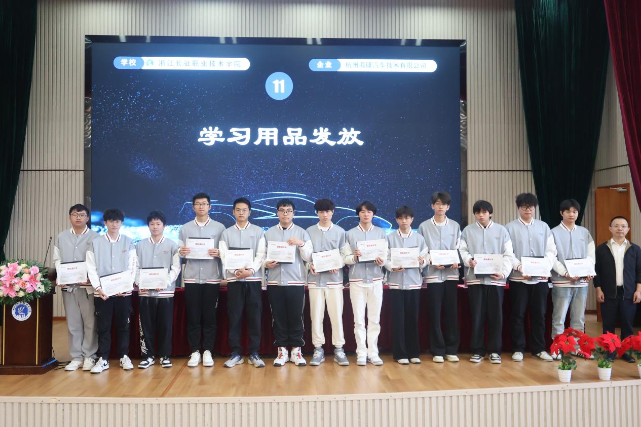 喻强宣读了“海康汽车订单班”学生名单,并为“汽车订单班”学生发放了学习用品。班主任张衡表示将积极做好班级服务,期盼同学们茁壮成长,早日成为企业栋梁。学生代表廖城湘同学表示非常荣幸能成为“汽车订单班”的一份子,一定会认真学习,不辜负企业和学校的厚望。