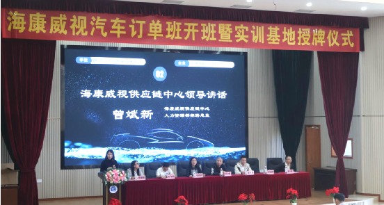 近日,学校与杭州海康汽车技术有限公司开办的海康威视汽车订单班在第二报告厅举行开班暨实训基地授牌仪式。杭州海康威视汽车电子业务中心滨江生产基地生产总监王本余、海康威视供应链中心人力资源部招聘总监曾斌新、高级招聘经理喻强,学校校企合作处处长吴少俊,智能技术学院院长张晓燕,智能技术学院党总支副书记佟珊珊,专任教师、辅导员、学生代表等出席了本次仪式。